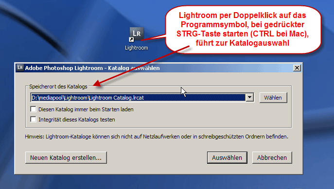 Der zu verwendenden Katalog kann beim Start ausgewählt werden