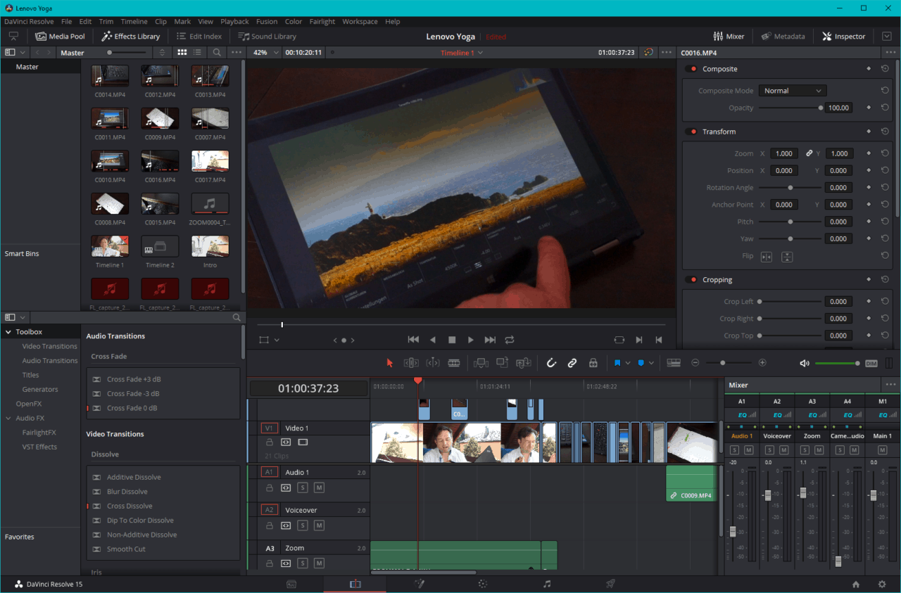 Seit gut 2 Jahren nutze ich für die eigentliche Schnittarbeit und Farbkorrektur DaVinci Resolve, das in der Grundversion kostenlos ist. Mit der Version 15 und der aktuellen Version 16 wurde DaVinci Resolve aber so gut, dass ich komplett auf Premiere – und auch auf After Effects verzichten konnte.
