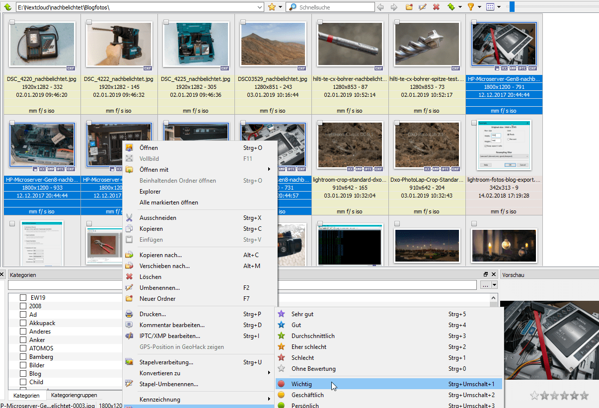 Als reine Bildbetrachter und Organisierer kommen jede Menge Alternativen in den Sinn. Meine Favoriten sind XnViewMP sowie der Faststone Image Viewer. Damit lassen sich Fotos sortieren, bewerten, EXIF- und IPTC-Metadaten bearbeiten usw. Zudem bieten sie viele grundlegende Bildbearbeitungsfunktionen, sodass man wegen einer einfachen Bildverkleinerung etc. nicht gleich eine „große“ Bildbearbeitung bemühen muss.