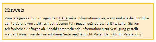 Als Startschuss für den neuen Umweltbonus gilt die Veröffentlichung im Bundesanzeiger. Dort: gähnende Leere. Verantwortlich für die Beantragung und Auszahlung ist das Bundesamt für Wirtschafts und Ausfuhrkontrolle (BAFA). Hier ziert eine schlichte Hinweisbox die Seite: