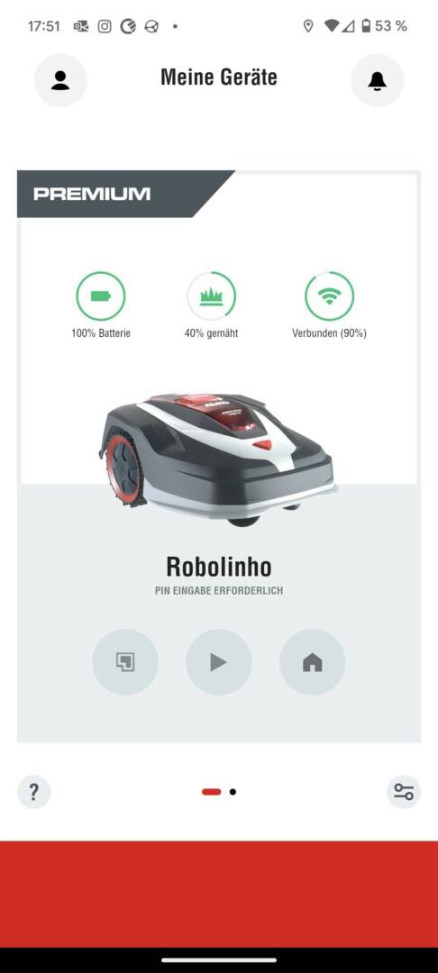 • Die App funktioniert und ich konnte den Mäher damit auch zur Ladestation zurückschicken, die er auch sicher findet.