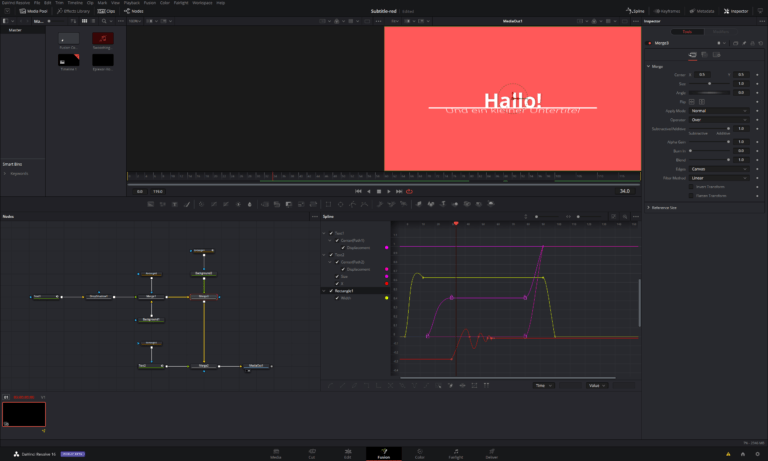Zeitliche Änderungen am Ablauf benötigen mit Fusion deutlich weniger Zeit, als bei After Effects. Als kleinen Nachteil empfinde ich manchmal, dass man in Fusion keine Audioclips verwenden kann. Man muss also im Nachgang im Resolve Editor vertonen, was mich aber gleich wieder zu einem großen Vorteil von Resolve bringt.