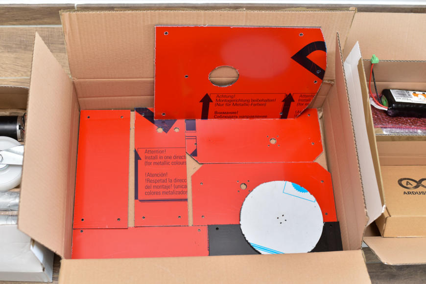 Letzte Woche kam ein recht schweres, aber kompakte Paket mit den Teilen für den ArduMower Mähroboter. Die Lieferung durch Marotronics erfolgte in Rekordzeit. Die ganzen Komponenten waren perfekt und sehr platzsparend verpackt. Den Akku hatte ich mir bereits vorher besorgt, da dieser wegen der Sicherheitsauflagen für Lithium-Ionen-Akkus extra und direkt über den Akku-Lieferanten versendet wird.