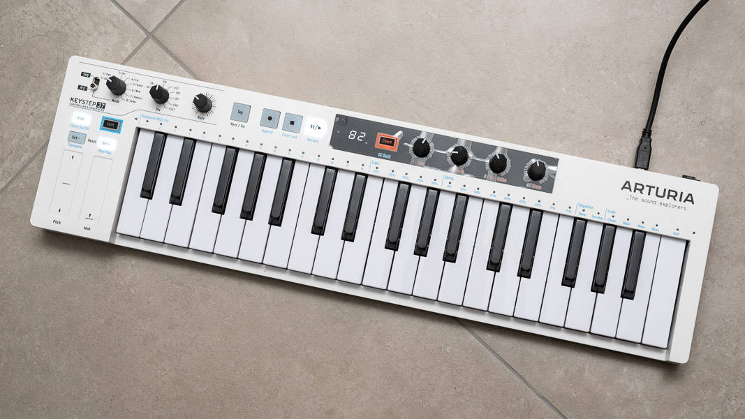 Ich war auf der Suche nach einem kleinen Keyboard-Controller mit mehr als zwei Oktaven und etwas größeren Tasten, das aber wenig Platz wegnehmen sollte. Arturia bietet hier den KeyStep 37 an. Das ist ein USB-Keyboard mit mittelgroßen Tasten, die nehmen Anschlagsdynamik auch über Aftertouch verfügen und ein ausgezeichnetes Spielgefühl vermitteln.