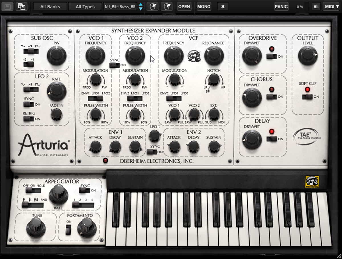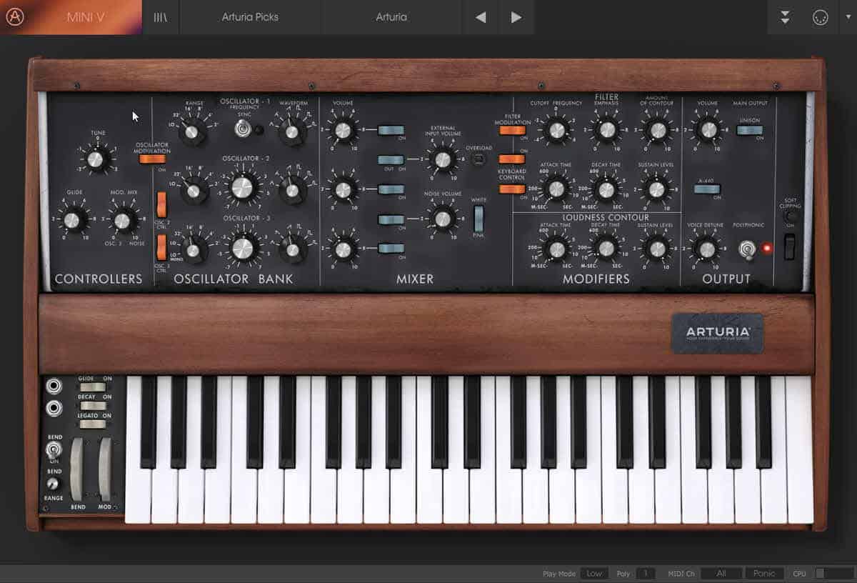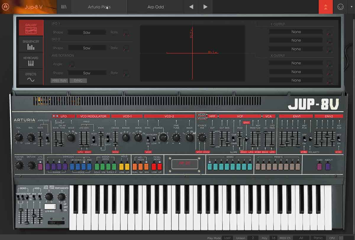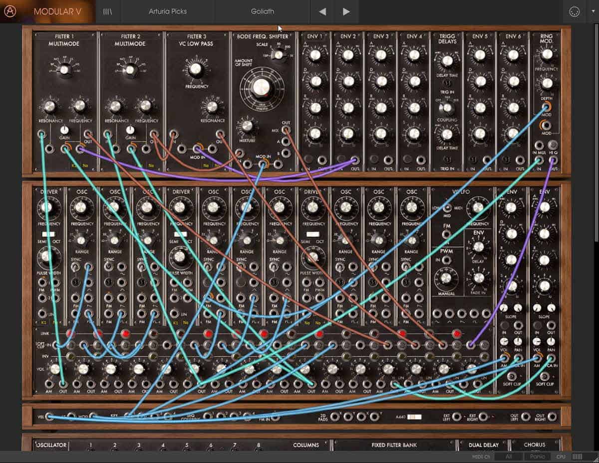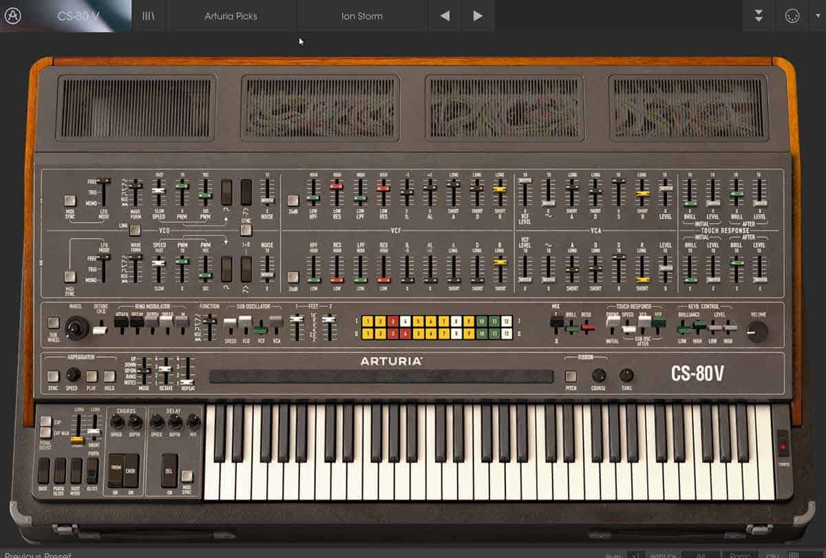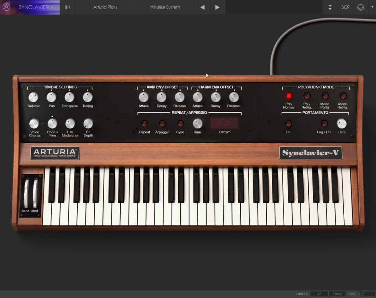 ARP 2600, Yamaha CS-80, Roland Jupiter-8, Oberheim Matrix 12, Sequential Prophet-5, Moog Modular, aber auch Wurlitzer Orgeln, E-Pianos und mehr. Alle Plugins sind dabei in Optik und Bedienung den Vorbildern nachempfunden. Zusätzlich bekommt man in der Version 5 eine Reinkarnation des Synclavier V, welche in Zusammenarbeit mit dem Entwickler der Original Synclavier-Software, Cameron James, entstanden ist. So findet man auch viele der Original Presets des sündhaft teuren Synthesizertraums wieder, und da fallen einem – zumindest den älteren Semestern unter euch – bestimmt gleich ganz viel Songs von damals ein, die auf diese Sounds bauten.