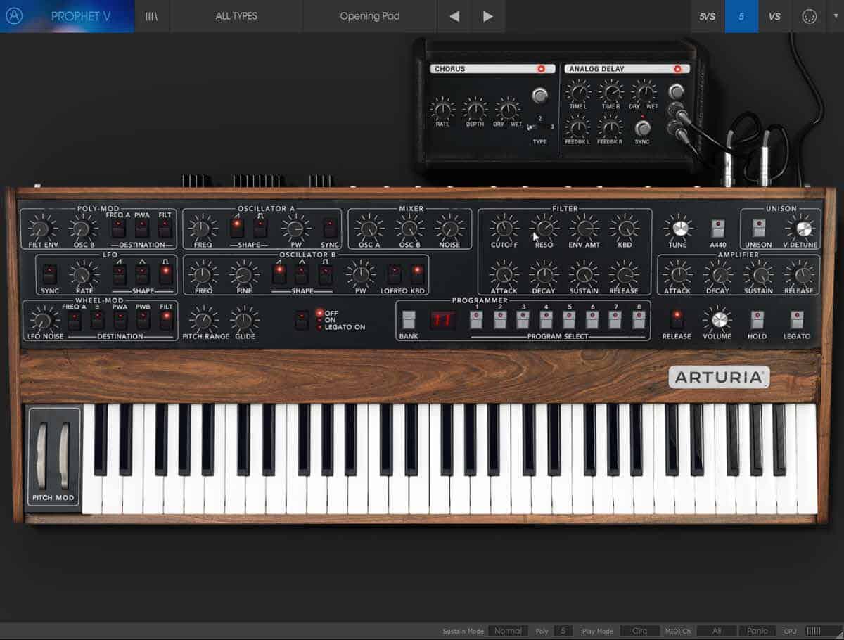 Mit der fünften Version der Arturia Collection wurden auch die GUIs überarbeitet, sodass sich die Plugins endlich skalieren lassen und auch mit 4k-Displays kompatibel sind. Weiterhin gibt es mit Analog Lab 2 eine eigene Software-Umgebung, aus der man alle Plugins und Sounds aufrufen kann, was gerade für den Live-Einsatz sehr praktisch ist.