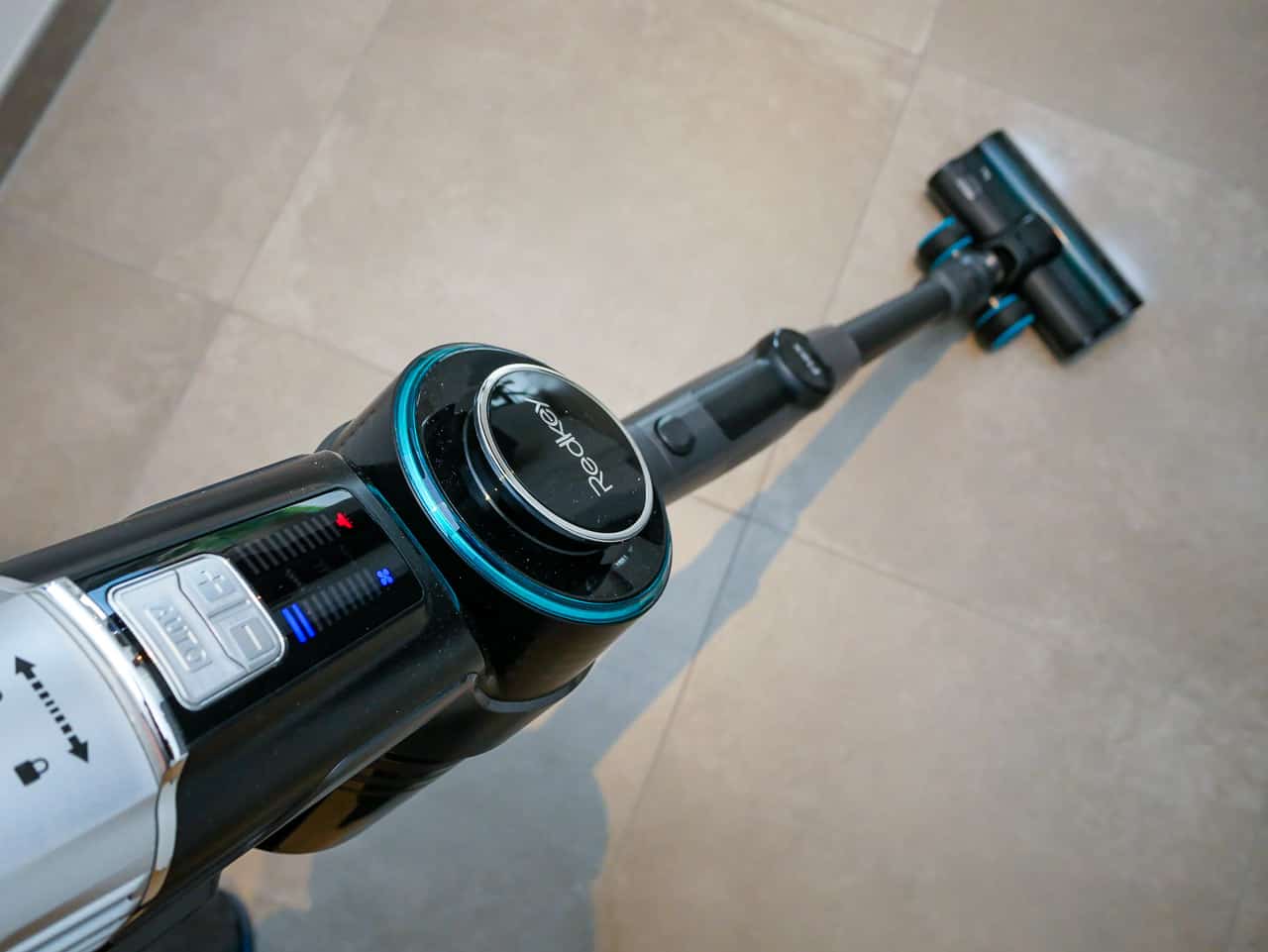 Der Redkey F10 ist so ein besonderes Modell. Mit dem eingebauten Staubsensor, passt er die Saugleistung in 5 Stufen der Verschmutzung an. Ist nur wenig Staub zu entfernen, wird mit geringerer Leistung gesaugt, was sich natürlich auch positiv auf die Akkulaufzeit auswirkt. Bei stärkeren Verschmutzungen wird die Saugleistung entsprechend angepasst. Natürlich kann die Leistung auch manuell eingestellt werden. Eine rote und eine blaue Anzeige, gibt Auskunft über die eingestellte Saugleistung und den Grad der Verschmutzung.