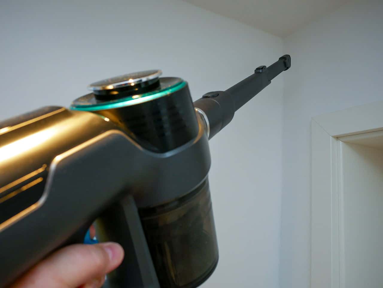 Eine Besonderheit beim F10 ist jedoch das abknickbare Saugrohr. Damit erreicht man auch schwer zugängliche Stellen unter Sofas oder dem Bett. Damit lässt es sich auch problemlos unter einem Doppelbett saugen, wenn man von beiden Seiten Zugang hat. Das ist eine große Erleichterung und damit werden endlich die Stellen sauber, an denen sich Wollmäuse sonst sehr wohl fühlen.