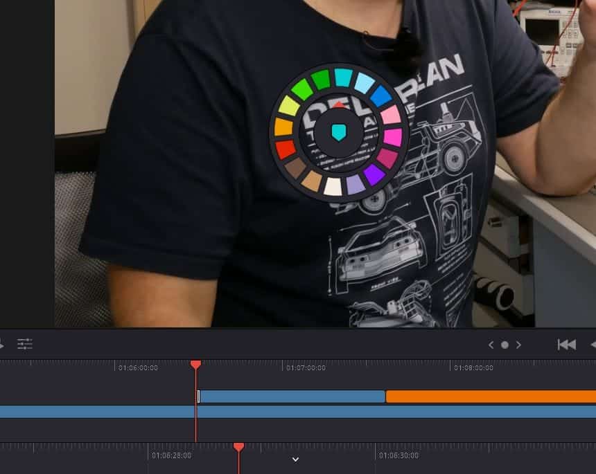 Mit der Audio-Taste und dem Jog-Wheel kann man die Lautstärke eines Clips schnell anpassen. Drückt man die Audio-Taste zweimal, kann man einen Marker einfügen. Hält man sie beim zweiten Mal gedrückt, lässt sich auch noch die Farbe des Markers mit dem Rad auswählen. Da ich viel mit Markern arbeite, um mir Stellen zu merken, an denen ich noch etwas tun muss, ist das eine sehr schöne Funktion.