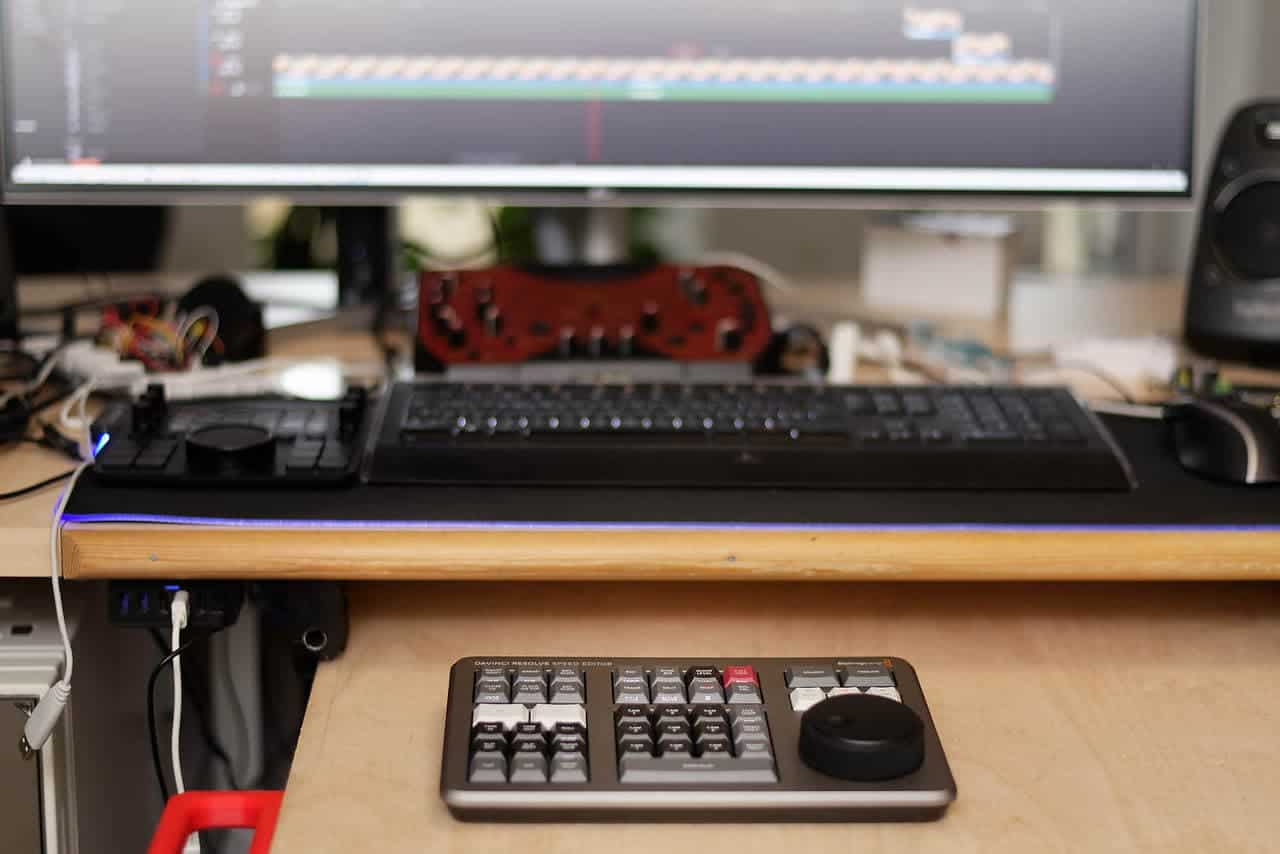 Blackmagic Design Speed Editor auf meinem DIY-Auszug unter dem Schreibtisch
