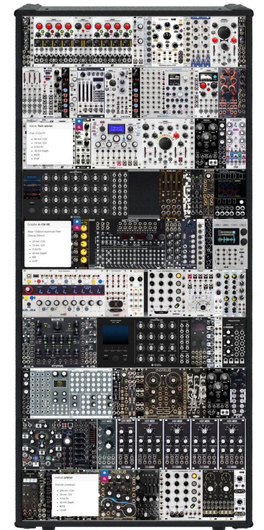 Auf der Seite Modular Grid, kann man sein Modular-System planen und viele stellen dort ihre Systeme vor, die oft mehrere 10.000 € gekostet haben. Es geht aber auch günstiger.