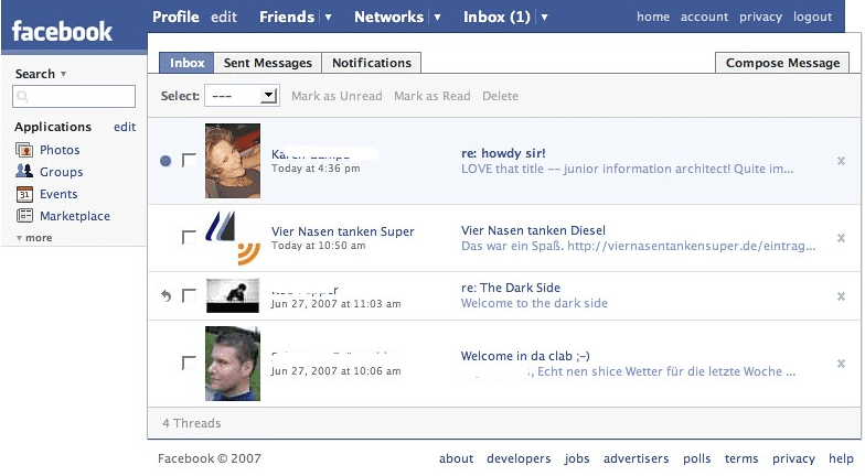 Von Facebook habe ich erstmals 2007 von einem Arbeitskollegen kanadischer Herkunft erfahren, der darüber mit Freunden in der Heimat in Verbindung blieb. Damals sah das nicht nur sehr unspektakulär aus – es war es auch. Der Gedanke dahinter gefiel mir aber.