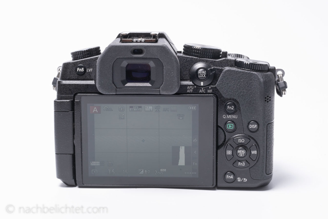 Der Autofokus während der Videoaufzeichnung funktioniert zuverlässig und leise, sofern genügend Licht und Kontrast vorhanden ist. Gerade im Videomodus zeigt sich der große Vorteil der Panasonic bei der Individualisierung der Bedienelemente. Man hat die persönlichen Einstellungen auf Knopfdruck oder Tippen auf dem Touchdisplay parat. Dazu hat man nicht weniger als 5 physische Tasten und 5 virtuelle Tasten auf dem Display zur Verfügung. Damit wird die G81 zur echten Videokamera mit schneller und zielsicherer Bedienung.