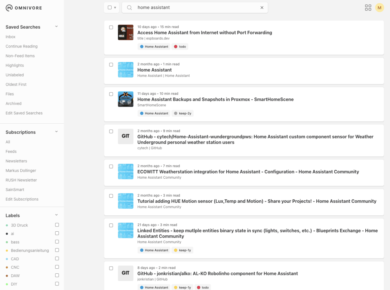 Das Omnivore-Plugin erfordert einen kostenlosen Omnivore-Account. Omnivore ist ein Bookmark-Management ähnlich Pocket oder Raindrop.io