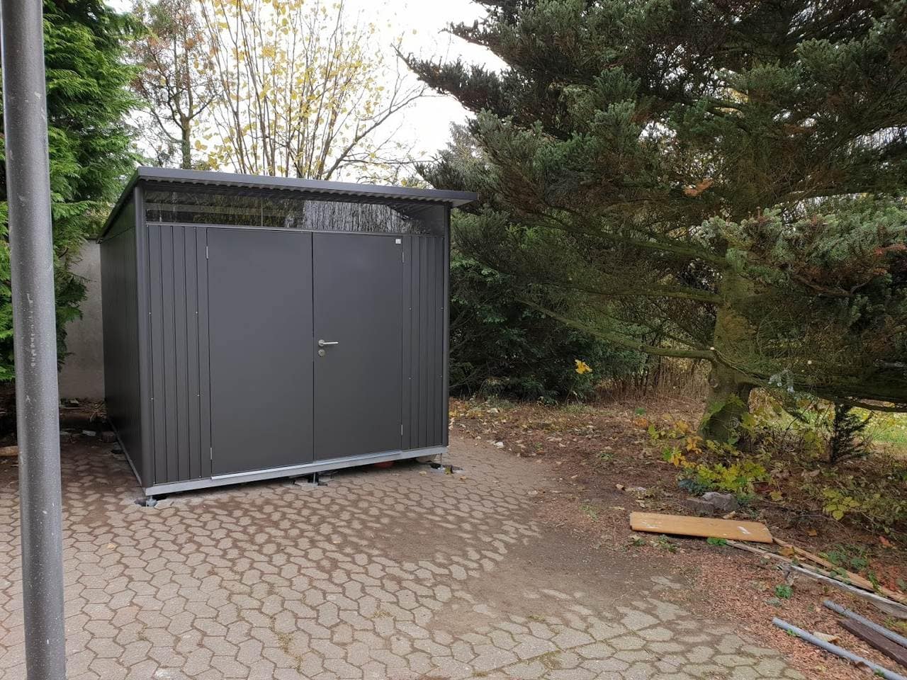 Mein Gerätehaus war unsere letzte gemeinsame Arbeit (siehe Titelbild). Auch das war ein echter „Dollinger“ mit selbstkontruiertem Schraubenfundament, das natürlich auch selbst geschweißt wurde.