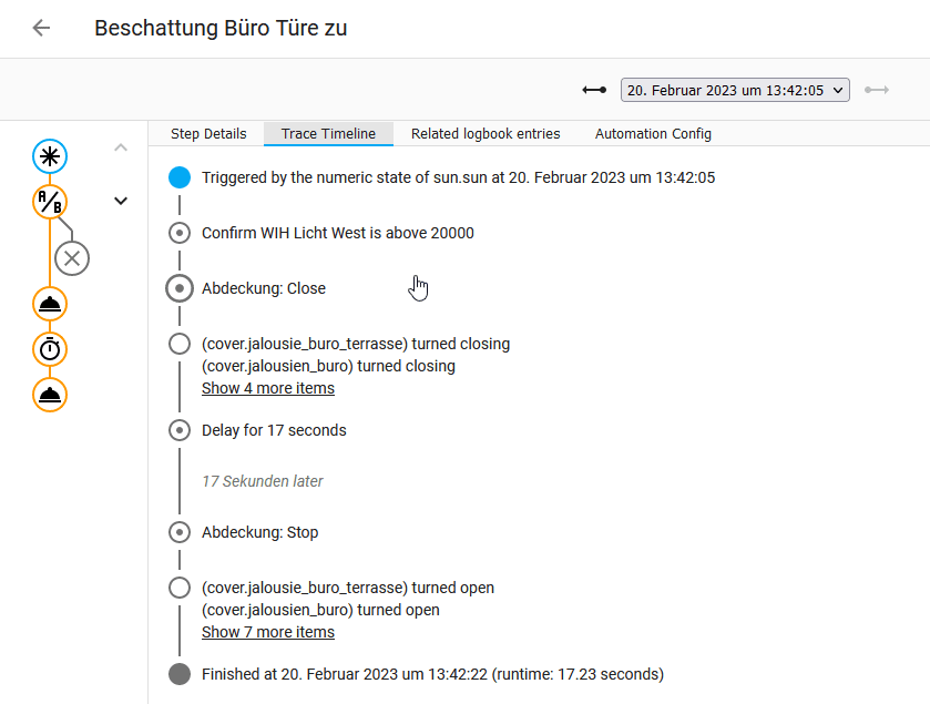 Du solltest jede Automation ausgiebig testen. Dazu kann man z. B. in den Entwickler-Tools die Werte der beteiligten Entitäten manipulieren. So lässt sich eine Automation schnell und einfach testen, ohne dass man erst auf die Änderung der Werte und Status warten muss. Ergeben sich hier Ungereimtheiten oder funktioniert die Automation gar nicht, kann man mithilfe der Trace-Funktion und im Logbuch den Ablauf nachvollziehen und anpassen.