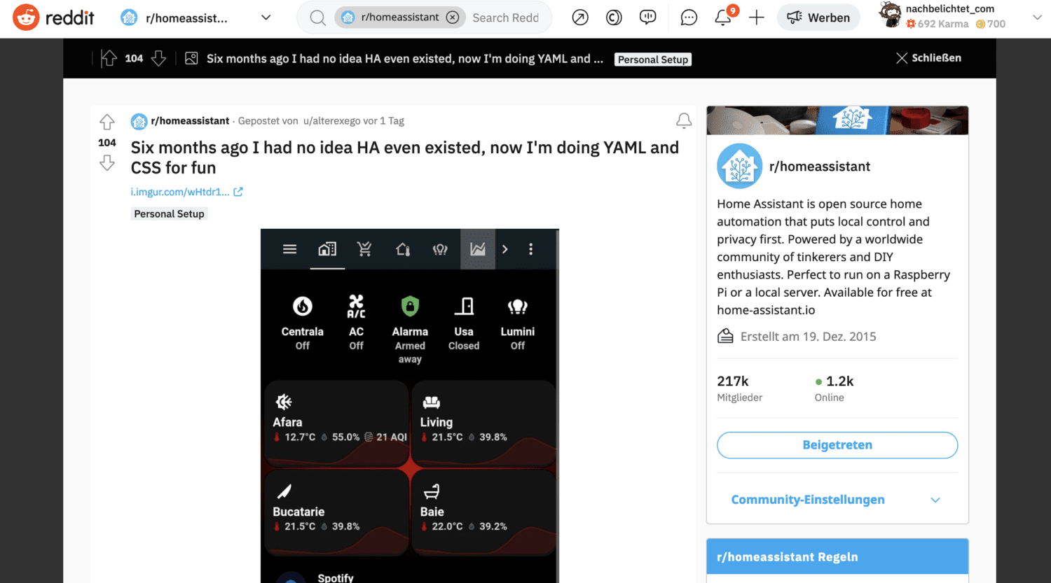 Die Home Assistant Community ist immer hilfreich und freundlich. Ebenso sollte man dort auftreten. Dazu gehört eine Forensuche, ob das eigene Problem nicht schon einmal Thema war, bevor man einen eigenen Thread dazu startet. Eine exakte Beschreibung des Problems sollte selbstverständlich sein und ein Auszug aus dem Log ist auch von Vorteil.