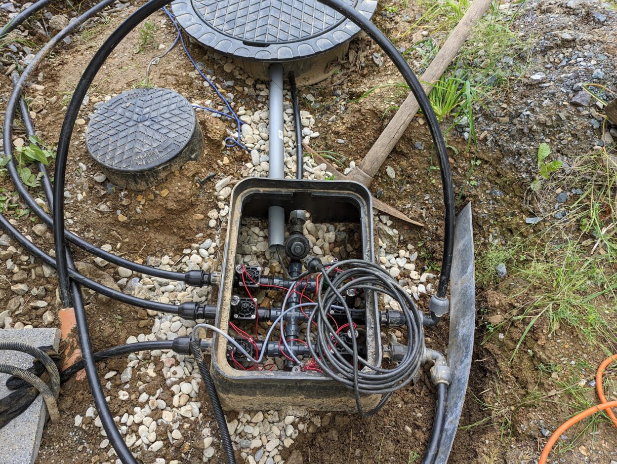 Wir haben daher auf dem Grundstück Rohre für eine automatische Bewässerung verlegt, wozu das Gardena Bewässerungssystem zum Einsatz kam, da diese Komponenten im letzten Jahr günstiger als die Alternativen von Hunter oder Rainbird waren.