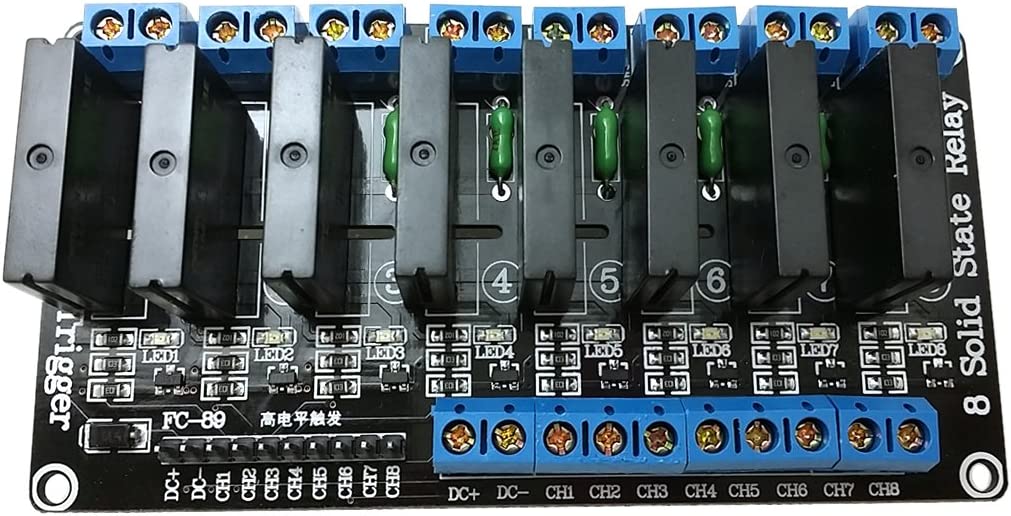 Wer den Aufwand mit der Ventilansteuerung nicht betreiben möchte, kann statt der Triacs auch eine solche SSR-Platine einsetzen, die man für unter 20 € bekommt. Hier muss man nur noch die Kanäle mit dem ESP ansteuern. Der Code unten kann auch hierfür genutzt werden.