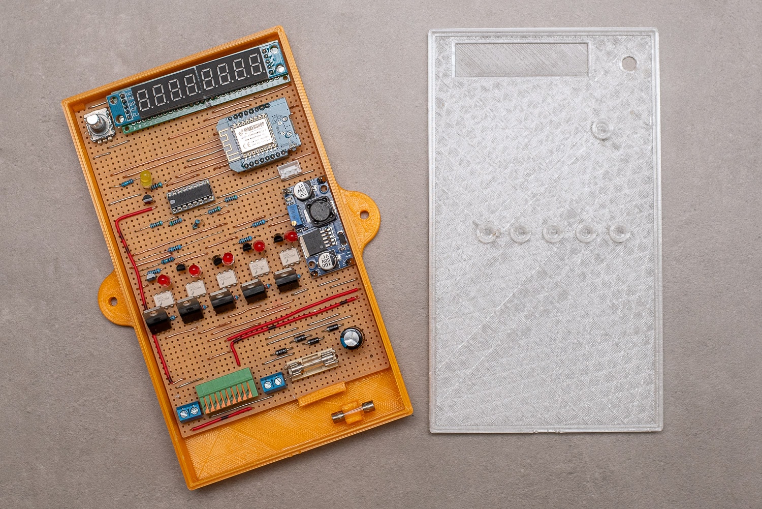 Damit alles auch ordentlich verpackt ist und auch gut aussieht, habe ich noch ein Gehäuse aus PETG und PLA gedruckt. Das transparente PETG lässt die LEDs und das Display durchscheinen.