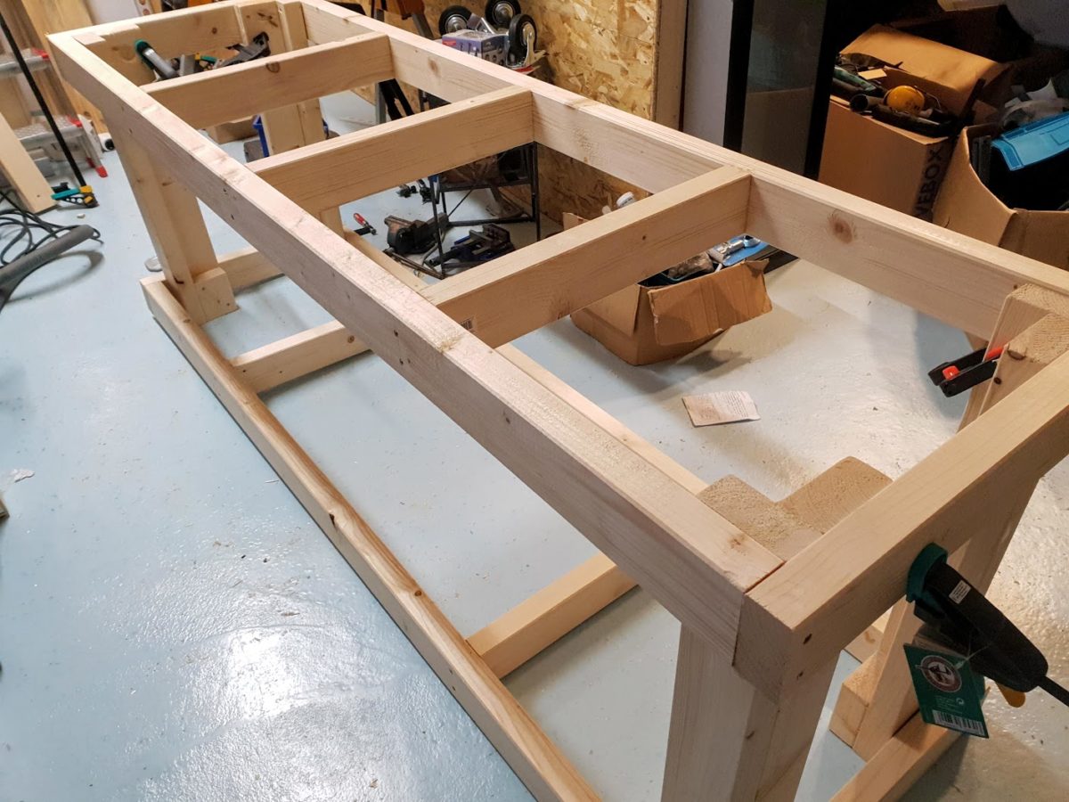 Inklusive der Trocknungszeiten für die Verleimungen, kann man den Unterbau (bei genügten Zwingen) an einem Tag bauen.