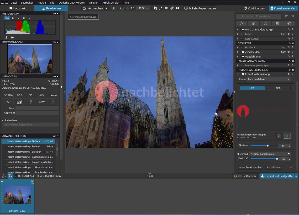 Eine neue Wasserzeichen-Funktion macht das Einfügen selbiger sehr einfach und unterschiedliche Verrechnungsmethoden (z. B. multiplizieren) ermöglichen eine perfekte Anpassung.