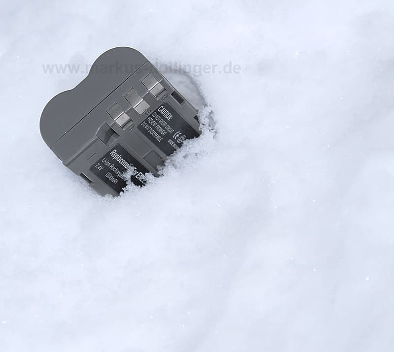 Anders als bei der Kamera, verhält es sich bei den Akkus. Lithium-Ionen-Akkus sind kälteempfindlich und verlieren ihre Leistungsfähigkeit, je kälter sie werden.