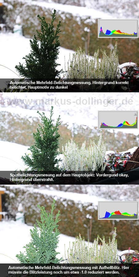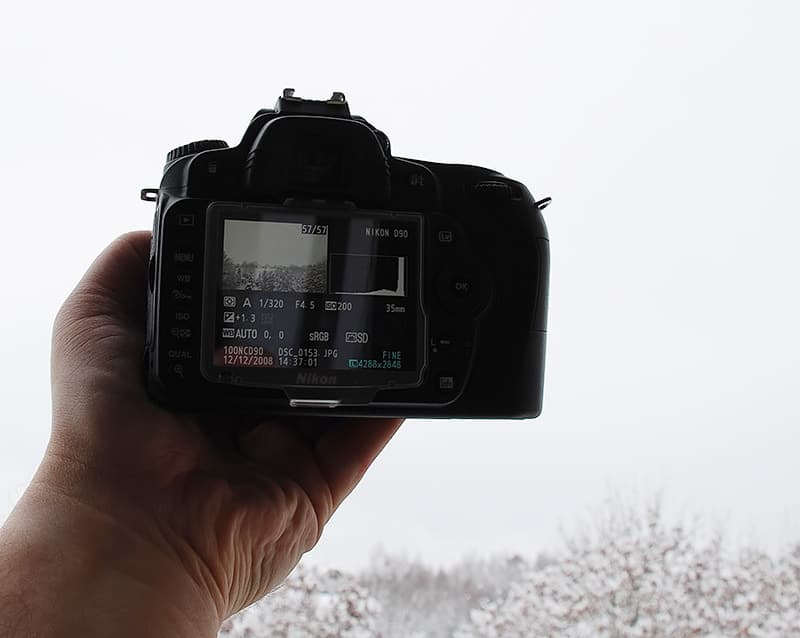 Ein weiteres Problem bei Fotos an einem sonnigen Wintertag ist das Kameradisplay. Es ist draußen oft so hell, dass man auf dem Display nichts mehr erkennen kann und gleich gar nicht, ob das Bild richtig belichtet ist.