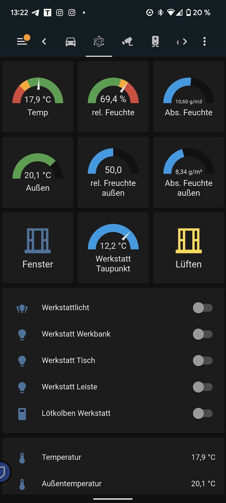 I would like to control even more via the existing LCN presence detectors and thus further reduce power consumption. There is still a lot of potential for optimisation here. I would like to optimise the irrigation control to an extremely high degree, because even 8,000 litres of rainwater is only enough for a limited time with the low rainfall. The automatic shading system also needs to be optimised. Then it’s time for the measuring devices in my workshop. For long-term measurements, it would also be nice if I had the current values in Home Assistant and could log them directly in InFlux.