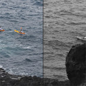 Die Farbbilder haben natürlich auch ihren Reiz, beim Foto mit den Kajaks ist die farbige Version tatsächlich auch passender.