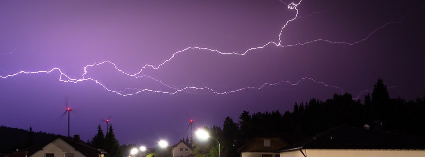 Das Grundprinzip bei der Gewitterfotografie ist es einfach immer und immer wieder auszulösen, sobald die Kamera die maximale Belichtungszeit erreicht hat. Irgendwann geht in Blitz in die Falle. Damit das nicht zur Megaanstrengung wird, ist ein Fernauslöser sinnvoll. Wer es noch komfortabler haben möchte, nimmt einen Intervallauslöser, der diese Aufgabe ganz von selbst erledigt.