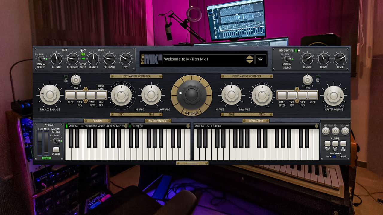 Mit dem M-Tron Mk II setzt GForce nun am „Heiligen Gral“ und der „Mutter aller Mellotrons“ an. Das Mellotron Mk I/Mk II kam 1963 auf den Markt und war die Grundlage für das bekannte M400. Mit zwei Manualen, mit jeweils 35 Tasten, konnte man sowohl Rhythmen als auch Lead-Sounds gleichzeitig spielen. Damals war es eine Art Unterhaltungselektronik, die z. B. bei der englischen Prinzessin Margret im Wohnzimmer oder Wohnpalast oder so zu finden war. Mit knapp 160 kg und einem Anschaffungspreis von etwa 1000 britischen Pfund – heute etwa 20.000 Euro – war es auch nur wenigen Menschen möglich, sich so etwas zu gönnen und es wurden auch nur 2.500 Stück produziert.