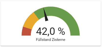 Wir benötigen einen Sensor mit dem aktuellen Wert, also z. B. dem aktuellen Wasserstand in Litern. Bei mir ist das die Entität sensor.zisterne_liter. Außerdem den maximal zu erreichenden Wert, den Grundwert. Bei meiner Zisterne wären das 5130 (Liter).