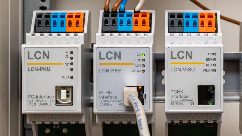 Mit dem LCN-VISU wurde der bisherige Ethernet-Koppler LCN-PKE so erweitertert, dass Sprachsteuerung und die Anbindung von Philips Hue Komponenten ohne großen Aufwand möglich wird. LCN setzt dazu intern auf OpenHAB und der kleine LCN-VISU Koppler bringt damit auch die OpenHAB-Benutzeroberfläche samt Fernzugriff per Smartphone ins LCN-System.
