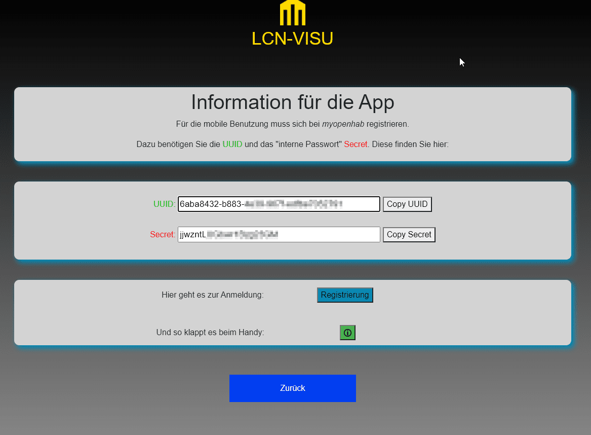 Im MyOpenHAB Konto trägt man dazu einfach die beiden Schlüssel ein, die man in der LCN-VISU unter Mobile Nutzung einrichten findet. Für den mobilen Zugriff benötigt man nun noch die OpenHAB App, die für iOS und Android kostenlos zur Verfügung steht. In der App wird der Server https://myopenhab.org sowie Benutzername und Passwort von MyOpenHAB eingetragen. Damit bekommt man Zugriff auf seine LCN-Steuerung – ganz ohne offene Ports im Router, VPN & Co. Bei meinen Tests war nach dem Eintragen der Schlüssel bei MyOpenHAB ein Neustart des LCN-VISU notwendig (kann unter den PCHK-Einstellungen ausgelöst werden), damit OpenHAB den Koppler als Online erkannte.