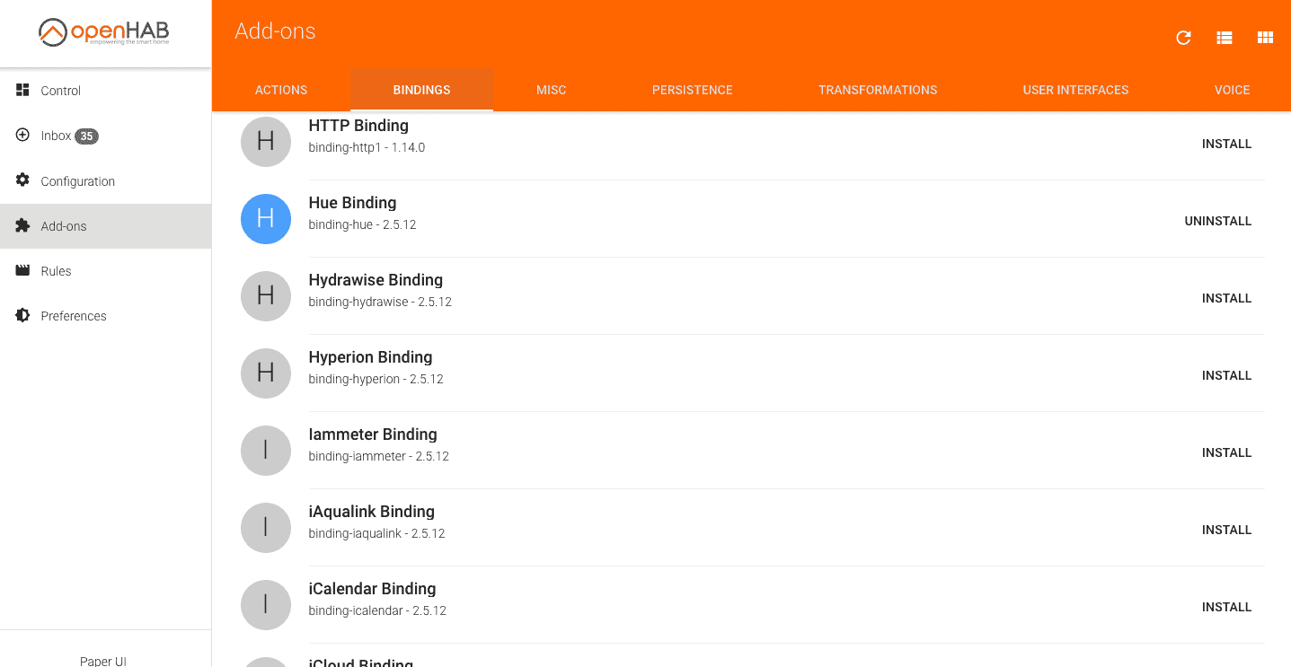 Dass man bei LCN Issendorff einen OpenHAB-Server in den kleinen LCN-VISU untergebracht hat, ist schon eine bemerkenswert gute Sache. Allerdings hat die Hardware des LCN-VISU natürlich auch ihre Limits. So findet man zwar auch jede Menge zusätzlicher Bindings für weitere Dienste und Funktionen, kann diese aber nicht installieren.