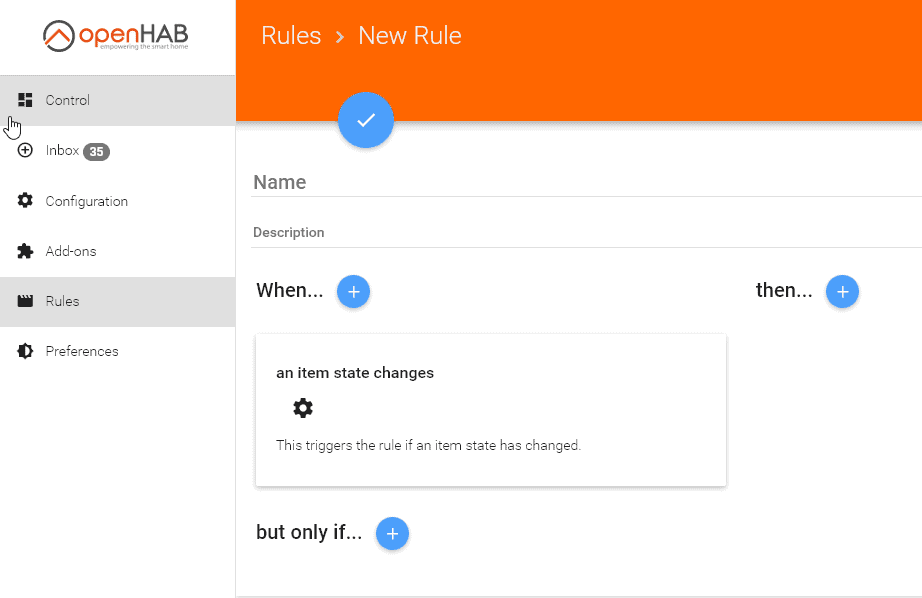 Aber auch in der OpenHAB Benutzeroberfläche des LCN-VISU können OpenHAB-Rules erstellt werden. Dabei lassen sich Zustände wie an oder aus, aber auch LCN-Kommandos auswerten oder setzen und komplexe Automationen erstellen. Das ist auf diesem Weg oft sehr viel einfacher, als über die Parametrierung der LCN-Pro.
