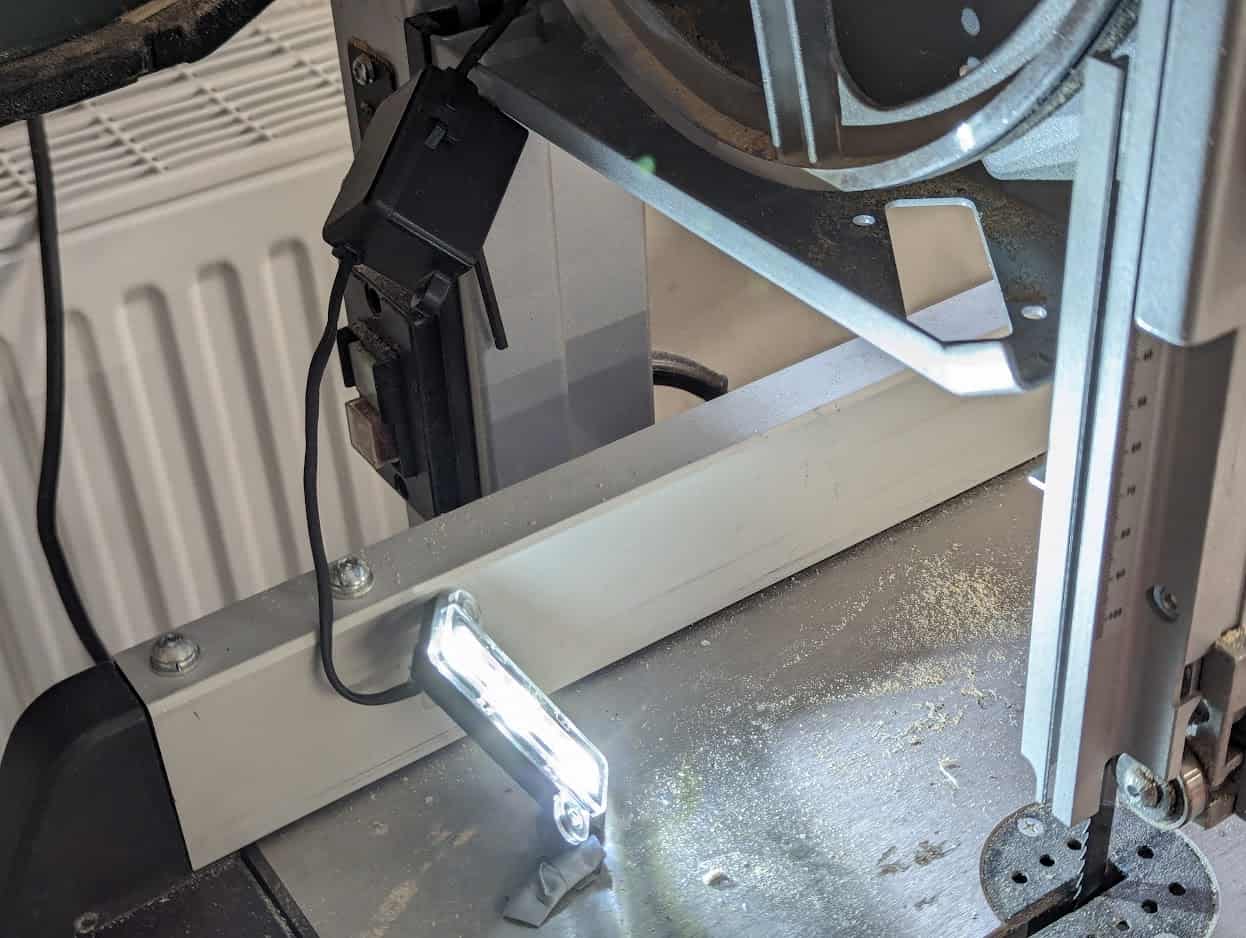 In meiner Werkstatt habe ich eine Metabo Bandsäge BAS261. Diese ist für meine Anwendungen, die sich in der Hauptsache auf das Zuschneiden von Platten zum Fräsen oder Lasern beschränkt. Leider ist kürzlich die LED-Beleuchtung des Sägetischs ausgefallen. Auch wenn diese nicht zwingend erforderlich ist (meine Werkstatt ist hervorragend ausgeleuchtet), habe ich doch gerne alles so, dass es auch funktioniert.