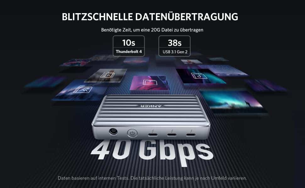 Eine Sandisk Extreme Pro lieferte bei mir am Anker Dock die gleichen Übertragungsraten, wie beim direkten Anschluss an den Mac. Mein MOTU 828es Thunderbolt-Audiointerface erreichte am Anker Mini Dock perfekt niedrige Latenzen ohne jegliche Störungen oder Aussetzer.