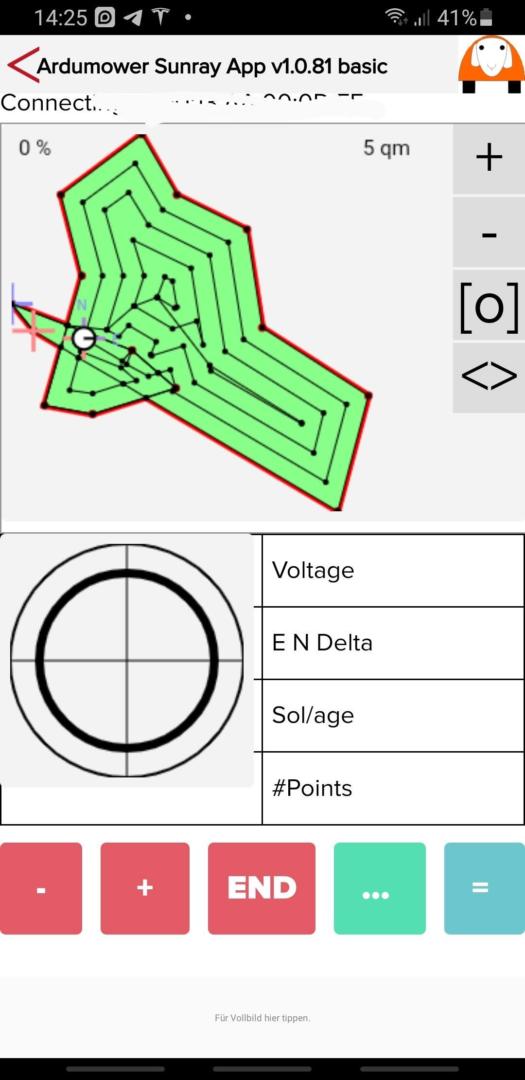 Der Mähmotor läuft sanft hoch. Alles gut! Automatisch fahren kann der ArduMower nur bei vorhandenem GPS Signal, er wüsste ja sonst auch nicht wohin.