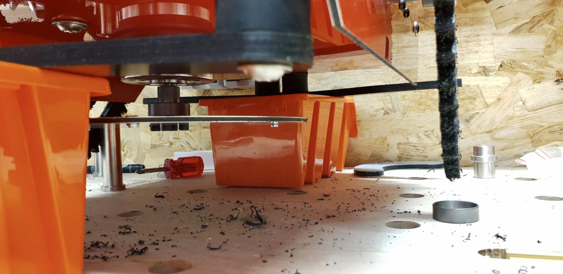 Ein weiterer Schritt ist geschafft: Der ArduMower ist weitestgehend zusammengebaut und alles funktioniert. Im Trockendock durfte er schon mal die Räder und den Messerteller bewegen. Die Messerscheibe läuft ruhig ohne Unwucht oder Höhenschlag.
