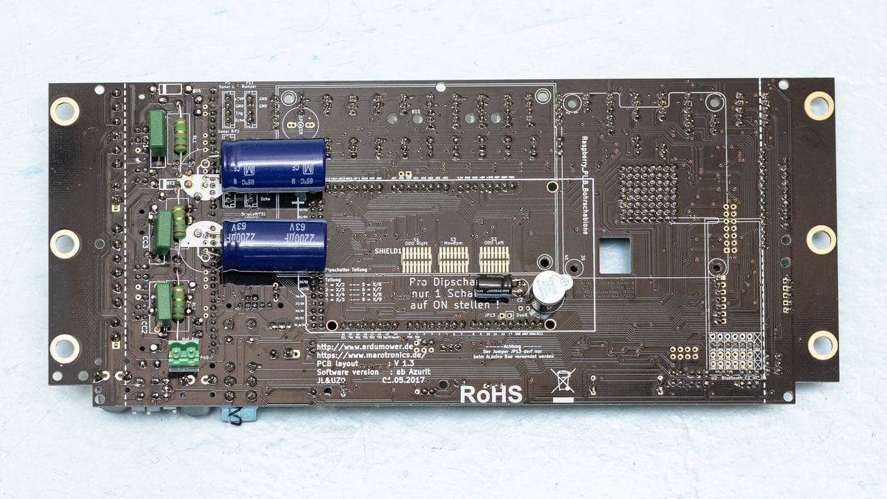 Es bleibt eine Handvoll bedrahteter (through hole) Bauteile und jede Menge Stift- und Sockelleisten. Diese können routiniert verarbeitet werden.