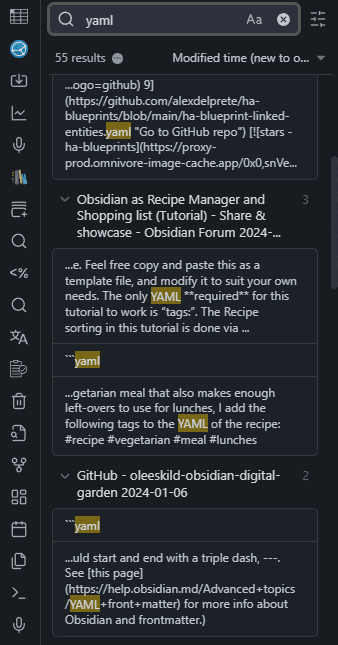 Eine schnelle Suche in Obsidian liefert auch alle Inhalte