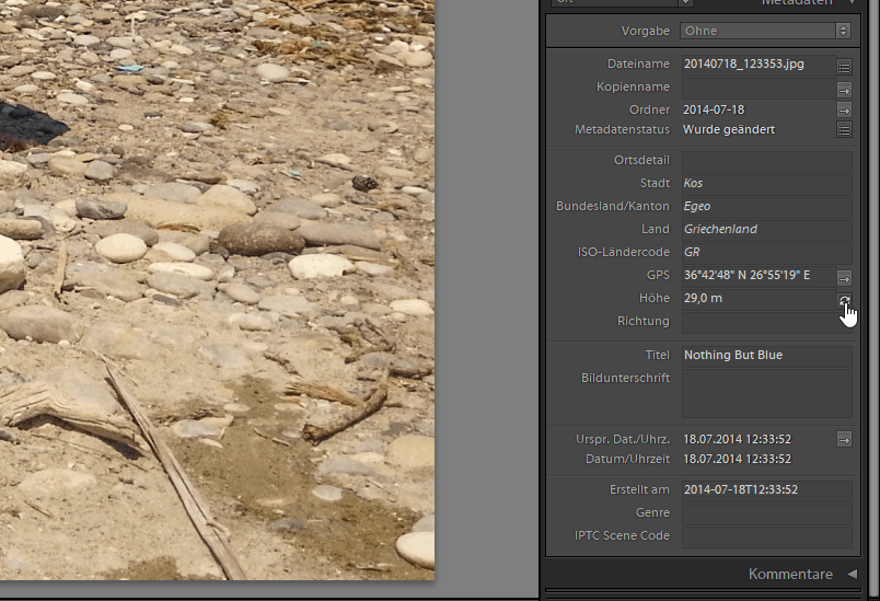 Wenn ihr GPS-Positionsdaten in euren Fotos habt, aber keine Höhenangaben enthalten sind, kann Lightroom nun diese aus Google Maps automatisch auslesen. Man klickt dazu im Metadaten-Panel (Bibliotheksmodus) im Bereich „Ort“ einfach auf den kleinen Butten neben „Höhe“.