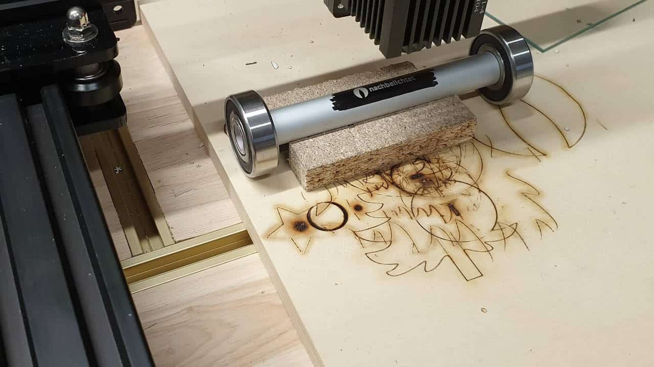 Eine deutliche Verbesserung dürfte daher ein sog. Air-Assist bringen. Mit einer Luftpumpe, wie man sie z. B. aus der Aquaristik kennt und einer 3D-gedruckten Düse vor dem Laser, wird der Dampf beim Gravieren und Schneiden weggeblasen, was zu sauberen Schnitten und besserer Schneidleistung führt, da der Laser nicht erst durch den Rauch dringen muss. Zudem bleibt die Linse des Lasers sauber. Dazu habe ich mir diesen Kompressor für knapp 30 Euro bestellt. Mit dem Air-Assist dürfte dann sogar noch dickeres Sperrholz kein Problem sein.