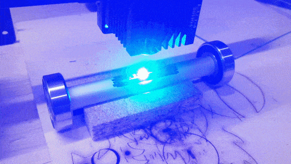 Einmal angemalt, habe ich ein 15 mm Aluminiumrohr sehr schön Laser-gravieren können. Der typisch bräunliche Einbrand ist dabei nicht schlechter oder blasser, als ich das von unserem professionellen Laser in der Firma kenne.