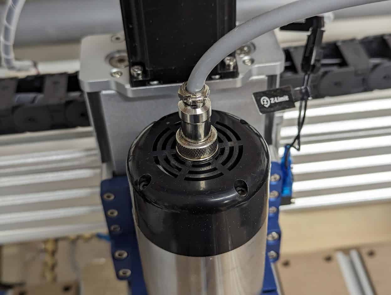 Ich habe der 4030 V2 eine luftgekühlte VFD-Spindel von Vevor mit 1,5 kW Leistung samt Frequenzumrichter spendiert. Die passende 63 mm Aufnahme wird von SainSmart mitgeliefert, sodass man hier nichts umbauen oder basteln muss. Zudem ist die Halterung aus Aluminium, was zur zusätzlichen Wärmeabführung von der Spindel sorgt. Ich wollte momentan nicht mit einer Wassergekühlten Spindel herummachen, da der Aufwand dafür ungleich höher ist. Das Kühlwasser muss mit Zusätzen versehen werden, damit es nicht kippt usw. Leider scheint dieser Spindelmotor derzeit ausverkauft zu sein.