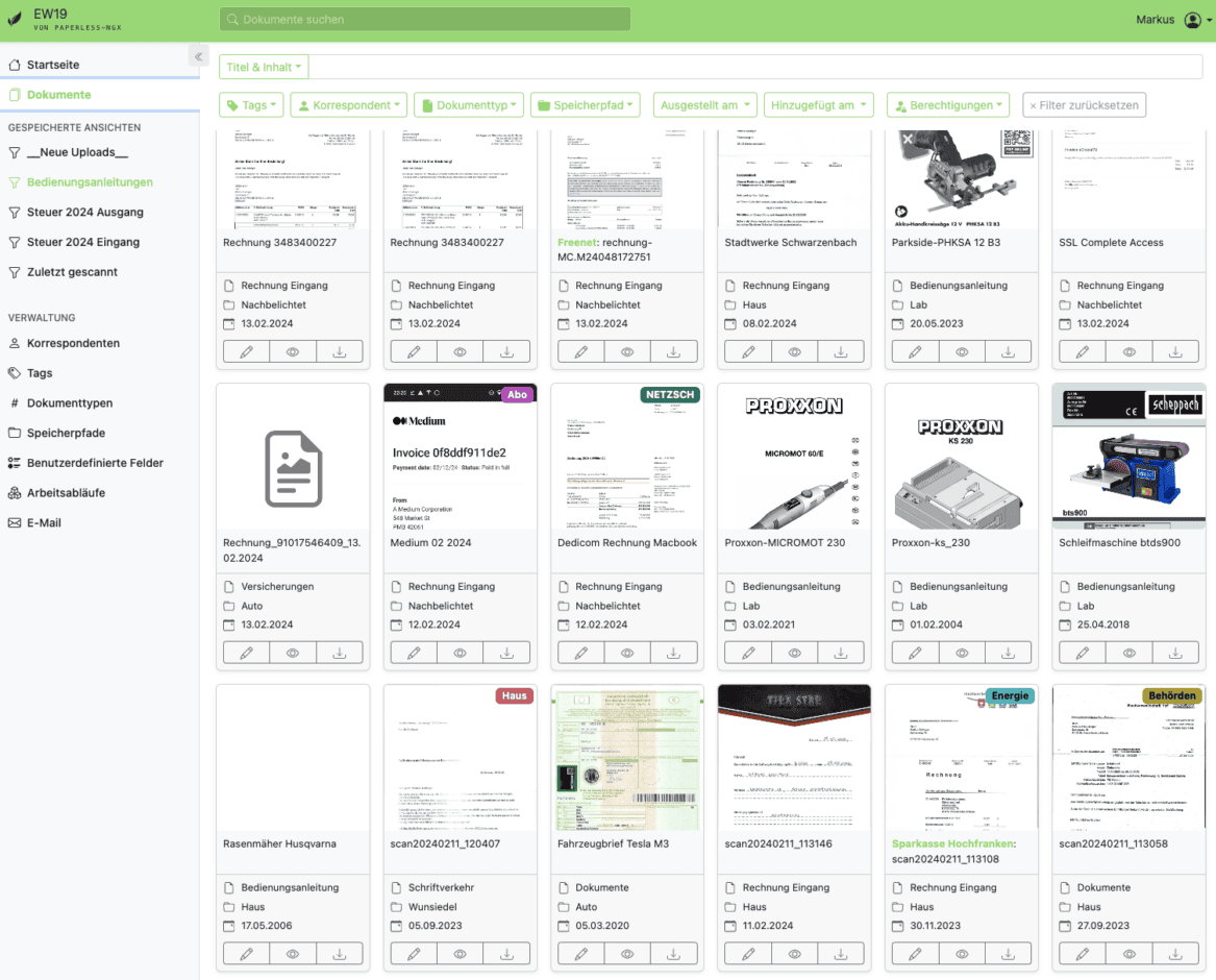 Die OCR von Paperless funktioniert hervorragend – so gut, dass ich mittlerweile über 1000 Rechnungen, Verträge, Bedienungsanleitungen und andere Dokumente erfasst habe.