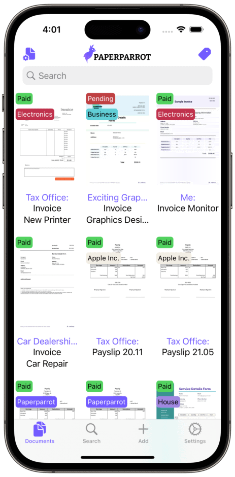 Es gibt einige Apps für Android und iOS, mit denen man auch unterwegs Zugriff auf seine Inhalte hat und auch Dokumente scannen kann. Unter Android nutze ich das kostenlose Paperless Mobile. Auf meinem iPad ist es Paperparrot, das mit 4,99 € doch sehr erschwinglich ist. Paperparrot lässt sich auch unter macOS einsetzen.