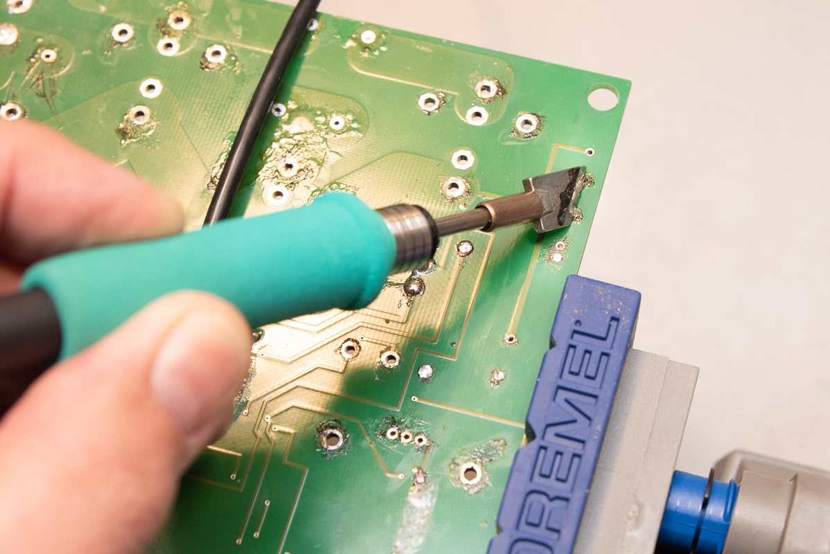 Ich war extrem erstaunt, wie groß der Unterschied bei der JBC Lötstation ist. Das Löten geht sehr viel schneller und leichter von der Hand. Große Masseflächen werden mühelos erhitzt, ohne lang auf einer Stelle herumbraten zu müssen. Der Lötspitzenwechsel von einer großen angeschrägten Lötspitze zu einer Bleistiftspitze mit 0,6 mm für SMDs geht spielend leicht und schnell und man muss sich auch keine Sorgen machen, dass einem die Lötspitze entgleitet oder man sich verbrennt. Nach dem Wechsel steht die Arbeitstemperatur in weniger als 5 Sekunden zur Verfügung.